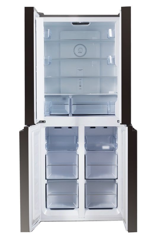 Colour – Black Glass Inverter Compressor 4 Door, Multi Door External Led Touch Screen Temperature Control Snow-white interior Led Interior Lights Electronic Control System No Frost